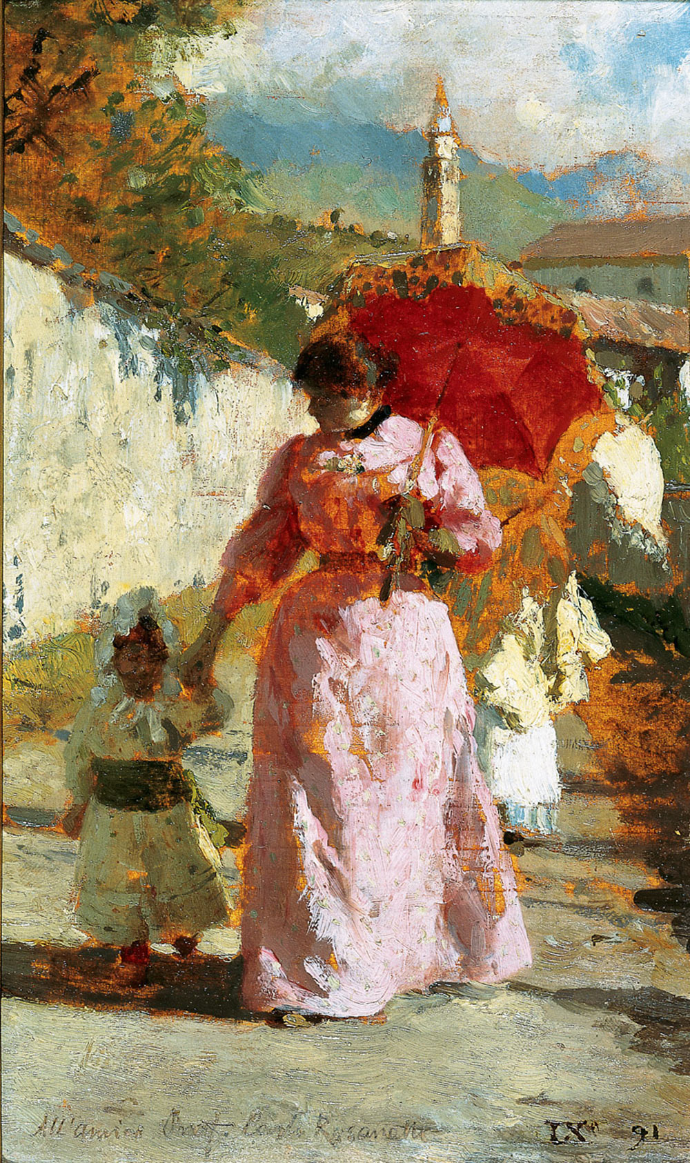 Una curiosità: questo dipinto è del pittore Luigi Nono (1850-1918): il nonno di Luigi Nono (1924-1990) compositore.