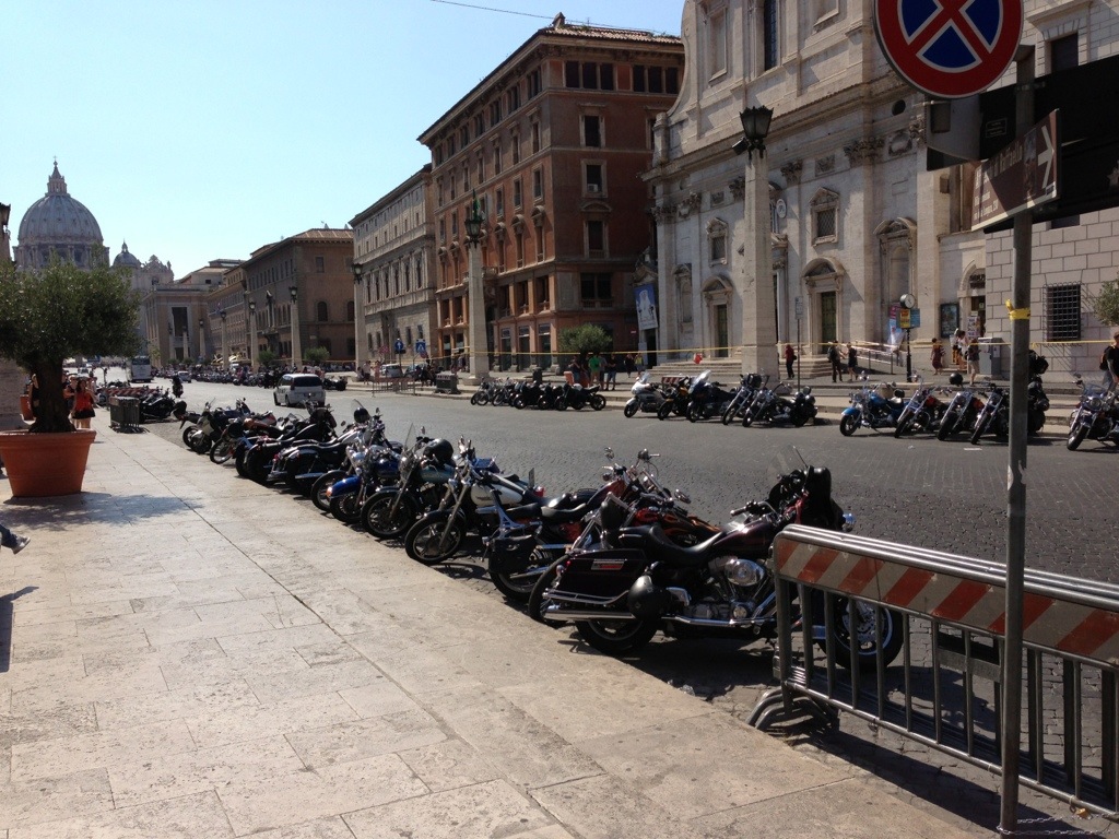 Live from Rome! Lot of motorbikes in via della Conciliazione. Harley Davidson of course. Waiting for tomorrow: the Mass with Pope Francesco