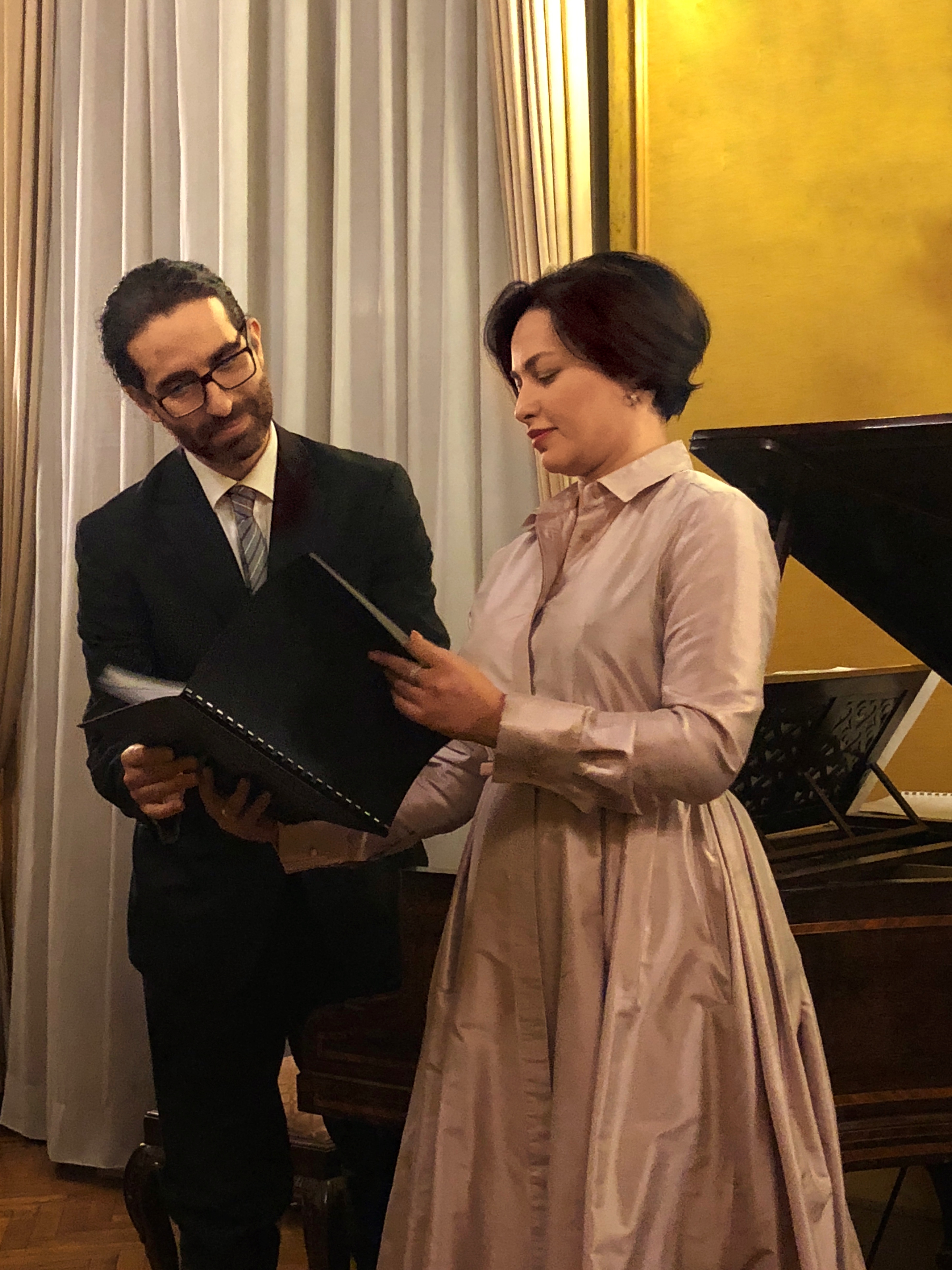 Ieri sera nella splendida cornice di Palazzo Ferrajoli SE Karlo Sikharulidze, ambasciatore della Georgia in Italia, ci ha invitato a celebrare i 25 anni di relazioni diplomatiche tra Georgia e Italia. Nel suo discorso l’ambasciatore ha sottolineato come tra i due paesi vi siano da sempre relazioni eccellenti dal punto di vista formale ma anche e soprattutto una simpatia e una vicinanza straordinarie. A impreziosire l’incontro un’anticipazione del concerto che si terrà stasera alle 20.30 presso l’Aula Magna dell’Università di Roma La Sapienza per la stagione della IUC – Istituzione Universitaria dei Concerti. Protagonisti, ieri come oggi, il mezzosoprano Nino Surguladze e il pianista Alessandro Stella ma soprattutto il compositore georgiano Giya Kancheli, autore delle musiche in programma, che purtroppo non ha potuto partecipare alle due serate.