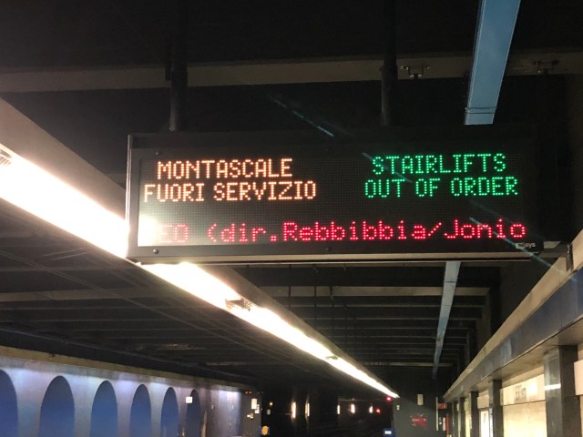 Chi scrive gli avvisi sulla metropolitana di Roma è un vero romano! “A guera e a tera ce so’ du’ erre sinnò è erore” Saluti da Reggina Sceli 🙂