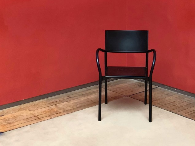 Chair (in a Museum) was taken for my immense passion for design. This chair was in a museum in Brussels to seat the keepers but is itself an object to be admired. The simple but harmonious line, the black that stands out on the red background. Wow