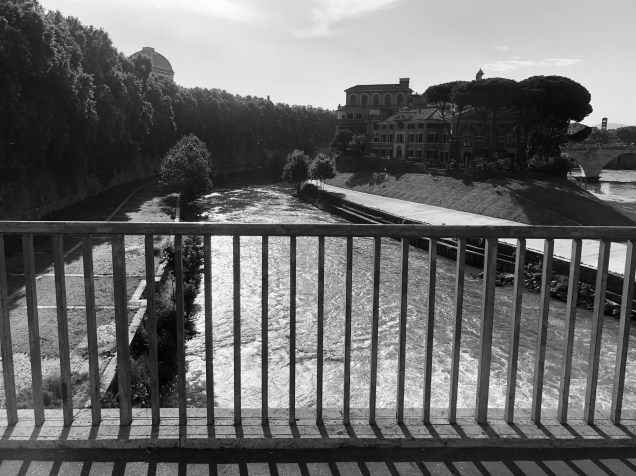 Isola Tiberina or Divisions. A railing, a river. Sometimes it takes light to look for unity