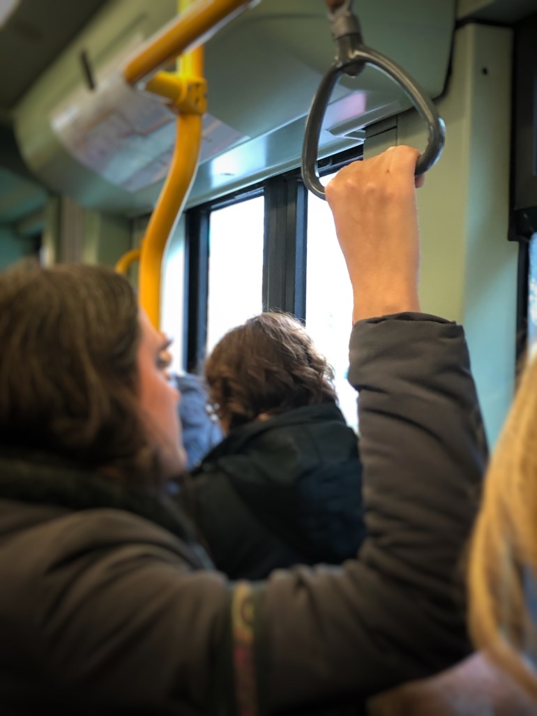 The Hand. Hold up to the appropriate supports. The jolts of the bus are the metaphor of our life, of racism, of sovereignism, of divisions… Hold up!